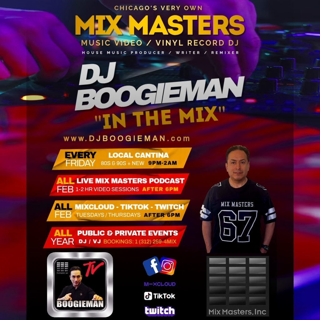 Today, DJ Boogieman of Mix Masters continues to captivate audiences in Chicago and beyond, since working with Madonna for the film "Truth or Dare" with his song "In The Mix" and most recently with ALOK, Steve Aoki, and Housequake, while delivering the hottest dance tracks and music videos to the world since the 1980s.