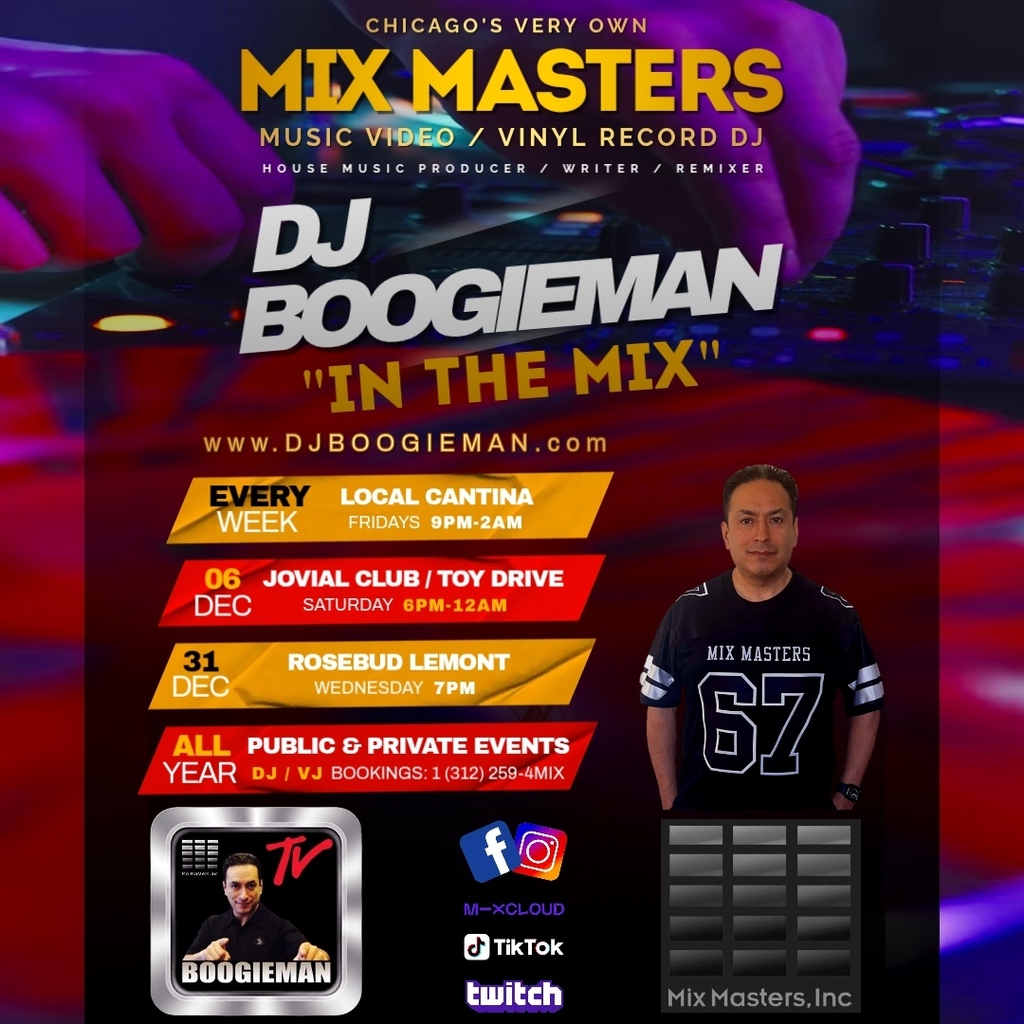 Today, DJ Boogieman of Mix Masters continues to captivate audiences in Chicago and beyond, since working with Madonna for the film "Truth or Dare" with his song "In The Mix" and most recently with ALOK, Steve Aoki, and Housequake, while delivering the hottest dance tracks and music videos to the world since the 1980s.